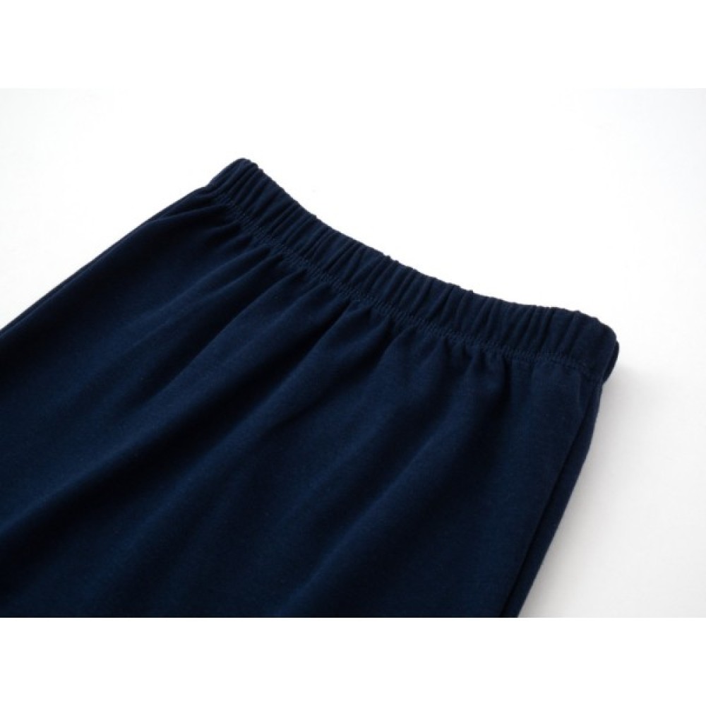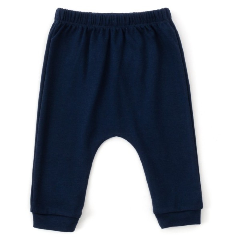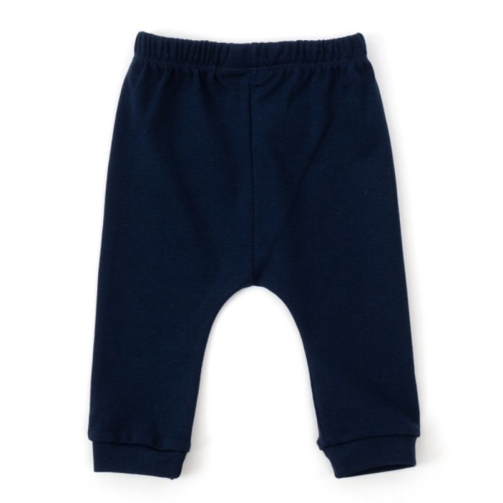 • Штанці темно-синього кольору, на трикотажних манжетах, зі зручною посадкою під підгузок. Без окремо вшитого поясу, на еластичній гумці всередині.