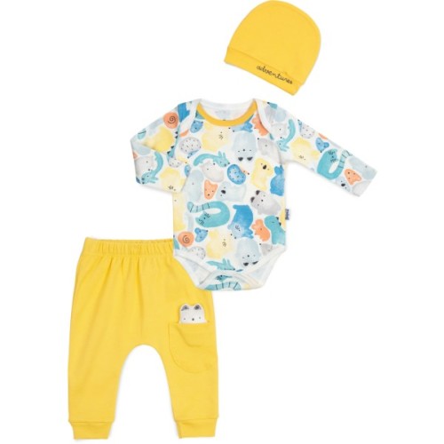 Чудовий трикотажний комплект 3в1 з котиками для хлопчика/дівчинки.