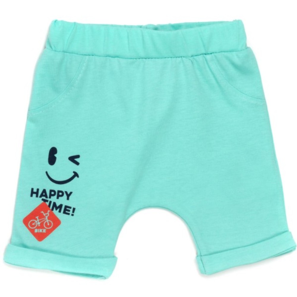 • Бриджики зручні, вільні, без кишень, на підгорнутих манжетах з основного трикотажу, без середнього шва - шва сидіння, зі зручною посадкою під підгузок та з широкою додатковою гумкою в трикотажному поясі. Штанці також прикрашені симпатичним кольоровим принтовим малюнком.