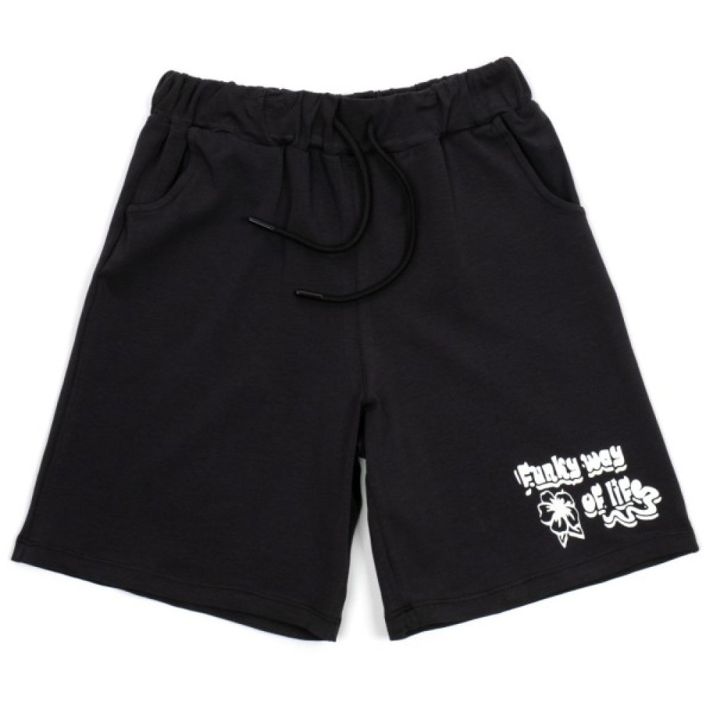Зручні подовжені шортики, трохи розкльошені А - форми, з еластичним трикотажним поясом на широкій резинці забезпечать оптимальну посадку по фігурі. У поясі додатково вставлений шнурок, що функціонує. Також є врізні неглибокі кишені.