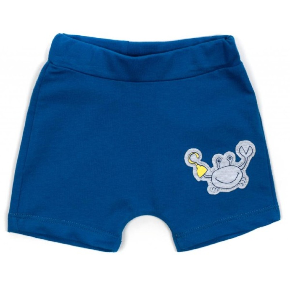 Шорти вільні, короткі, без кишень, під резиночку в поясі. Пояс трикотажний, на додатковій гумці, на лівій частині шорт mini-аплікація на морську тематику.