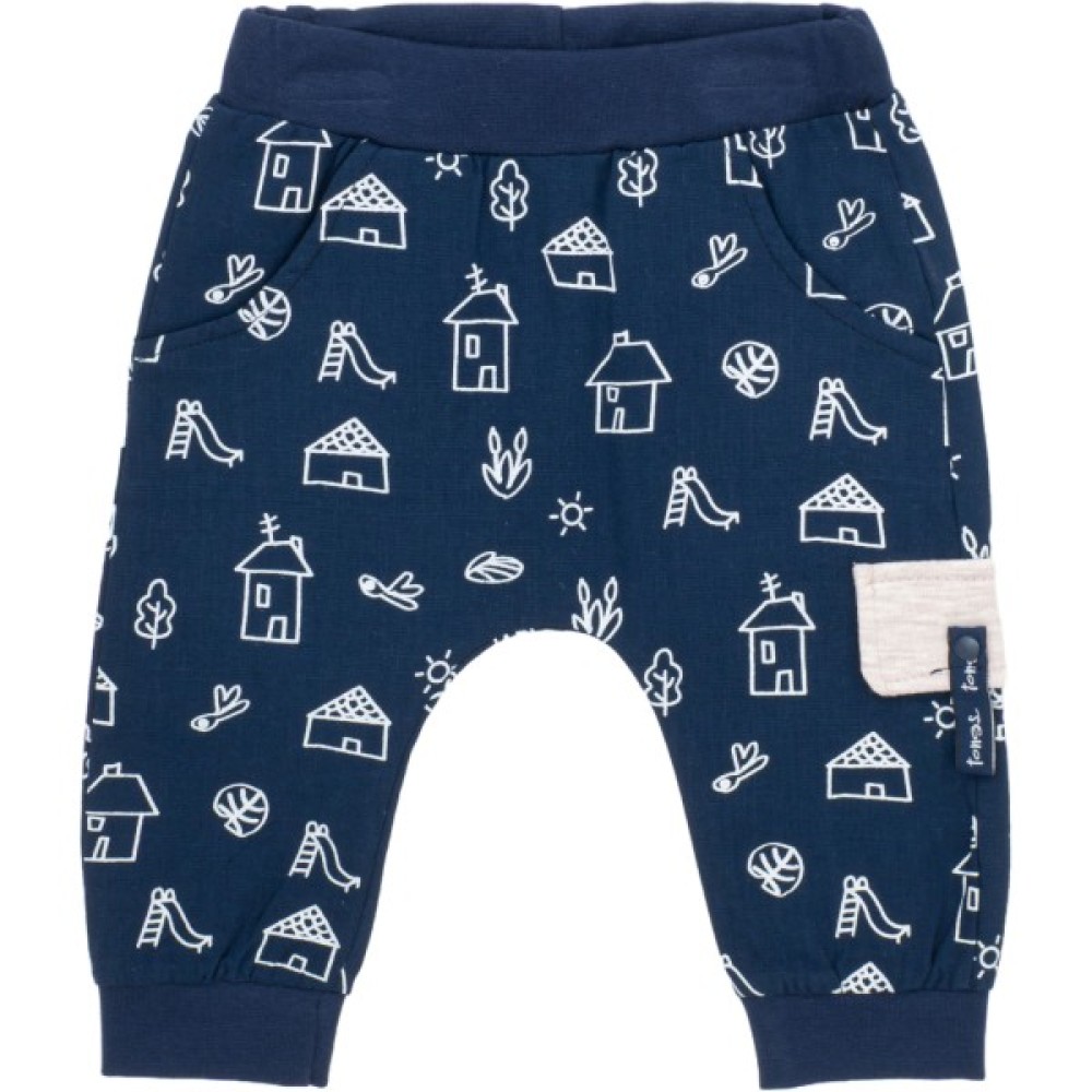 • Штанці зручні, бавовняні в кольоровій гамі, як і жилет, без середнього шва (шва сидіння), під трикотажну гумку в поясі та з трикотажними манжетиками по низу, забезпечать дитині повну свободу рухів і оптимальну посадку по фігурі. Розраховані під підгузок. Штани мають дві передні скошені прорізні кишені. Збоку на ніжці оздоблені аналогічним декоративним клапаном, як на жилеті.