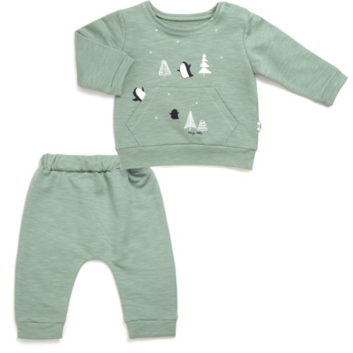 • Чудовий трикотажний комплект для маленького модника. Виконаний з двониткового, бавовняного турецького трикотажу оливкового кольору. Тканина середньої щільності, шовковиста, дуже приємна на дотик.