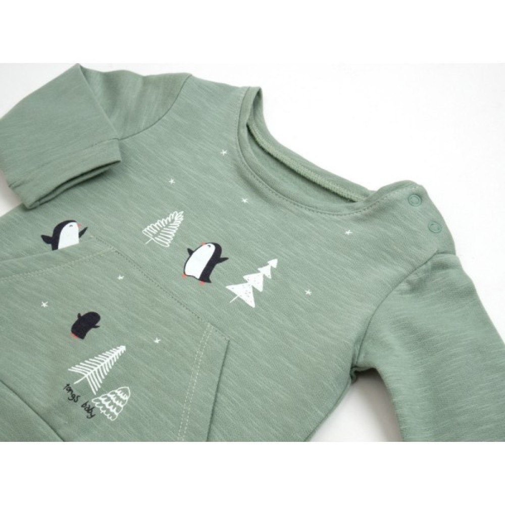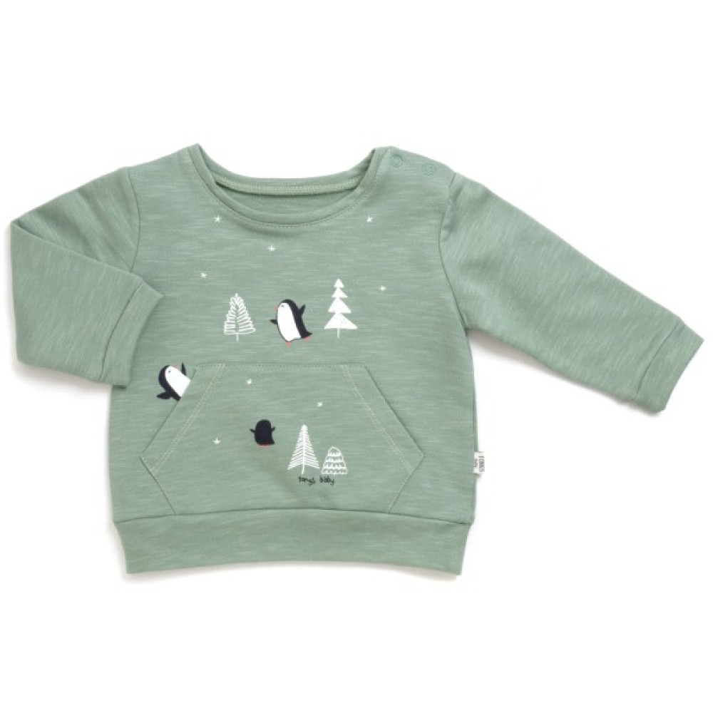 • Світшот прямого силуету, з довгими рукавами, прикрашений на грудях пінгвінами та ялинками. На світшоті є кишеня – «кенгуру».