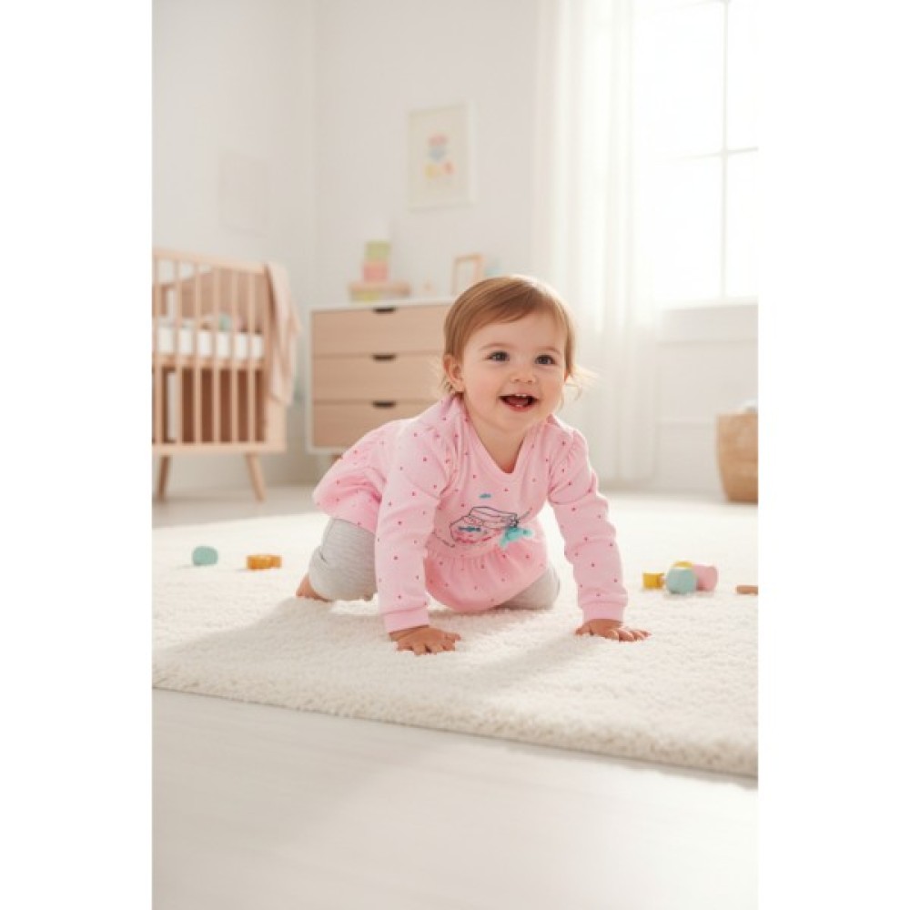 • Чудовий трикотажний комплект від тм Tongs з якісного бавовняного турецького трикотажу: рожева кофтинка з оборочкою і меланжеві світло-сірі штанці - 100% бавовна.