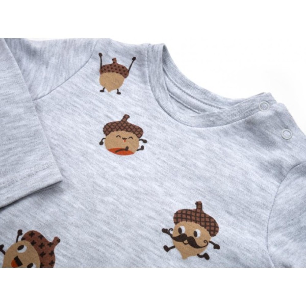 прямого силуету, з довгими рукавами, прикрашена спереду кумедними принтованними фігурками-образами жолудів. Круглий виріз горловини оформлений подвійною трикотажною резинкою. На лівому плечі застібка на дві кнопки, яка полегшить процес надягання.