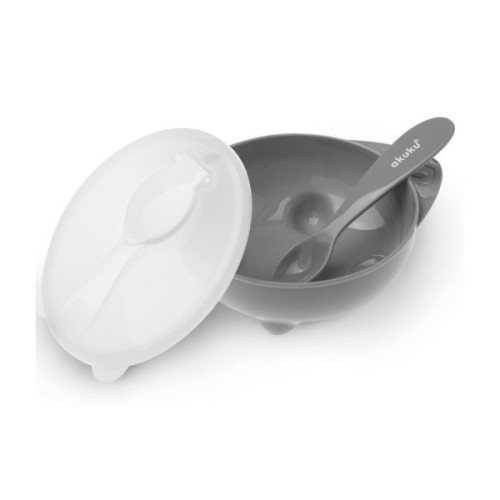 Набір дитячого посуду Akuku з ложкою, сіра (A0425)