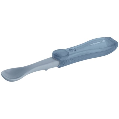Хочете дати малюкові теплий суп, йогурт або фруктовий мус на ходу? Складна дорожня ложка - ідеальне рішення для зручного годування поза межами дому. Ложка відкривається одним простим натисканням і готова до використання, де завгодно. Ложка складається в зручний невеликий розмір, легко поміщається в сумку або рюкзак. Футляр, вбудований в ручку ложки, запобігає накопиченню бактерій, завдяки чому ложка залишається чистою, а її використання гігієнічним і безпечним для дитини. Після прийому їжі ви можете носити її без ризику забруднити сумку чи рюкзак. Заокруглені краї не дратують ніжні ясна малюка, тому ложки також будуть ідеальними в перших спробах самостійного прийому їжі. Ложка призначена для дітей старше 4 місяців.