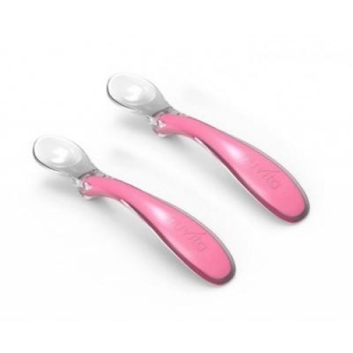 Дві рожеві ложечки для годування малюків від італійського бренду Nuvita. Вони вироблені із силікону, матеріал безпечний для дитячих ясен та перших зубів. Особливість ложечок – спеціальна форма, завдяки якій, основна частина не торкається поверхні, що забезпечує додаткову гігієнічність. Не містить бесфінол-А та фталатів. Рекомендовано дітям з 6 місяців.