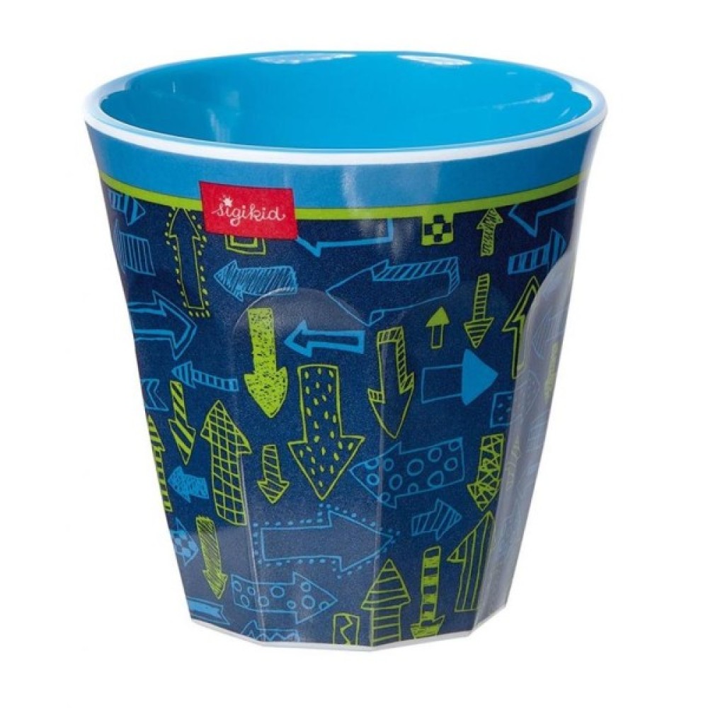 Яскрава дитяча склянка із якісного пластику «Arrows» ємністю 250 ml від німецького бренду sigikid. Склянка надзвичайно практична та зручна. Її можна мити у посудомийній машині, матеріал відрізняється зносостійкістю і не ламається. Яскраві малюнки приваблюватимуть дітлахів. У колекції «Arrows» ще є: пласка і глибока тарілочка, ланчбокс, пляшечка для води, рюкзак та футляр для окулярів – усіх їх об’єднує яскравий графічний малюнок синьо-салатового кольору.