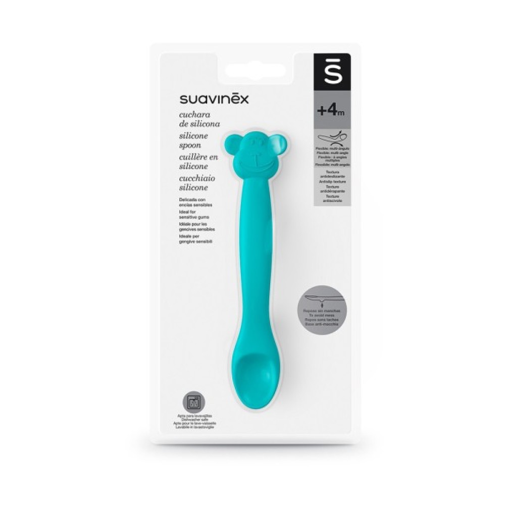 Силіконова ложка стане чудовим помічником при переході від годівлі з пляшечки до твердої їжі. Виготовлена з м'якого силікону. М'який і гнучкий дотик спеціально розроблений для чутливих ясен, а нековзна структура допомагає запобігти падінню, що значно полегшує годування дитини, яка вже їсть самостійно. Ергономічна форма адаптується до маленьких ручок.