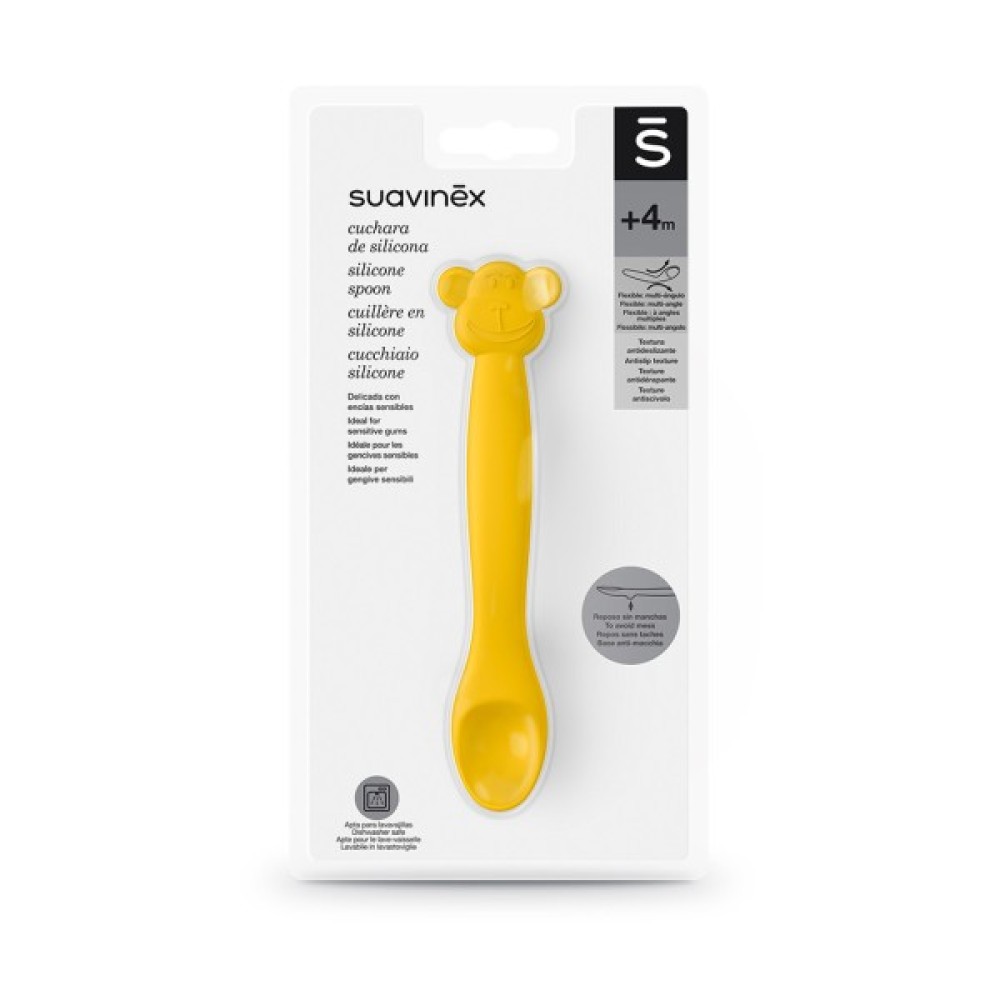 Силіконова ложка стане чудовим помічником при переході від годівлі з пляшечки до твердої їжі. Виготовлена з м'якого силікону. М'який і гнучкий дотик спеціально розроблений для чутливих ясен, а нековзна структура допомагає запобігти падінню, що значно полегшує годування дитини, яка вже їсть самостійно. Ергономічна форма адаптується до маленьких ручок.