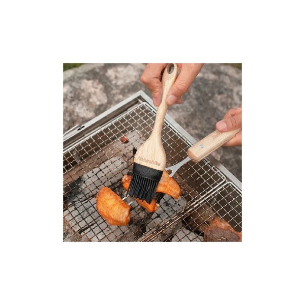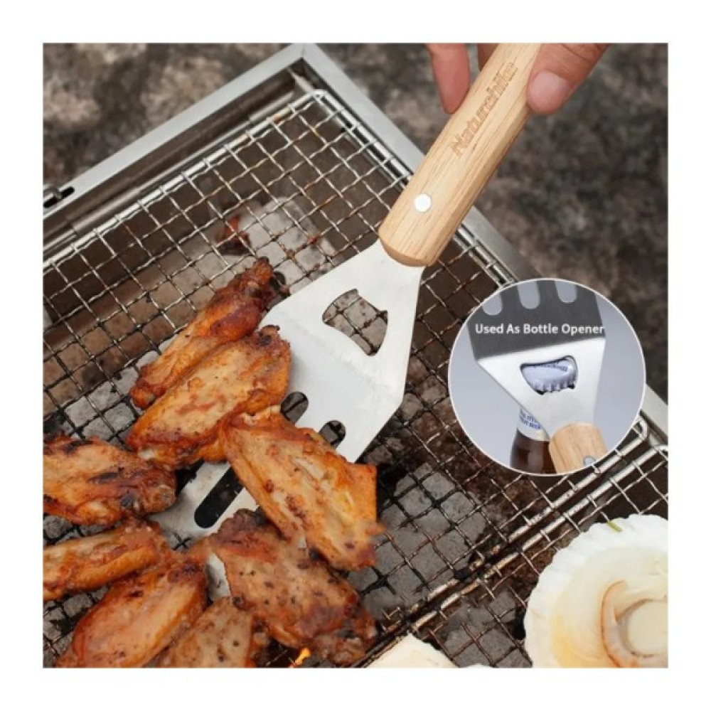 Набір для барбекю Naturehike NH20SK007 складається з 4 предметів, кожен із яких виконує свої функції. Лопатка з відкривалкою дозволяє не тільки перевертати їжу, а й одним рухом відкривати напої. Щипці забезпечують чудовий контроль над поворотом м'яса, зберігаючи його соковитість та аромат. Силіконовий пензлик дозволяє рівномірно наносити на продукти соуси чи маринади. Виделка спеціально розроблена для комфортного приготування їжі та її захоплення. Всі предмети мають дерев'яні ручки, які не нагріваються та є дуже зручними під час приготування їжі.