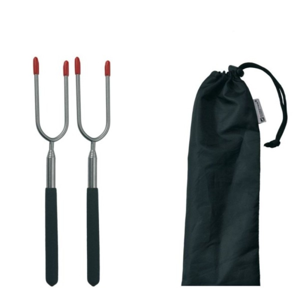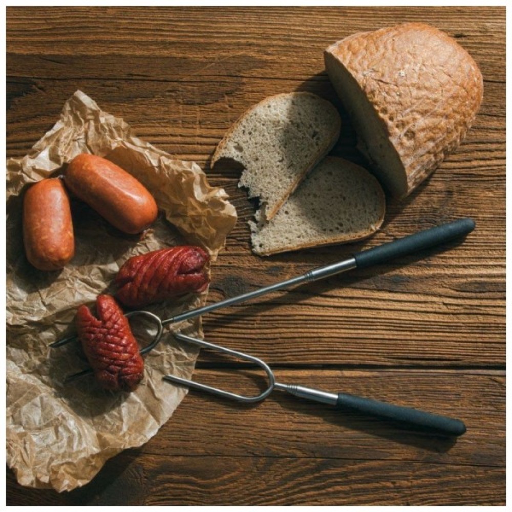 Практичний набір Lipno від Schwarzwolf з двох телескопічних вил для барбекю, упакованих в нейлоновий чохол на шнурку.