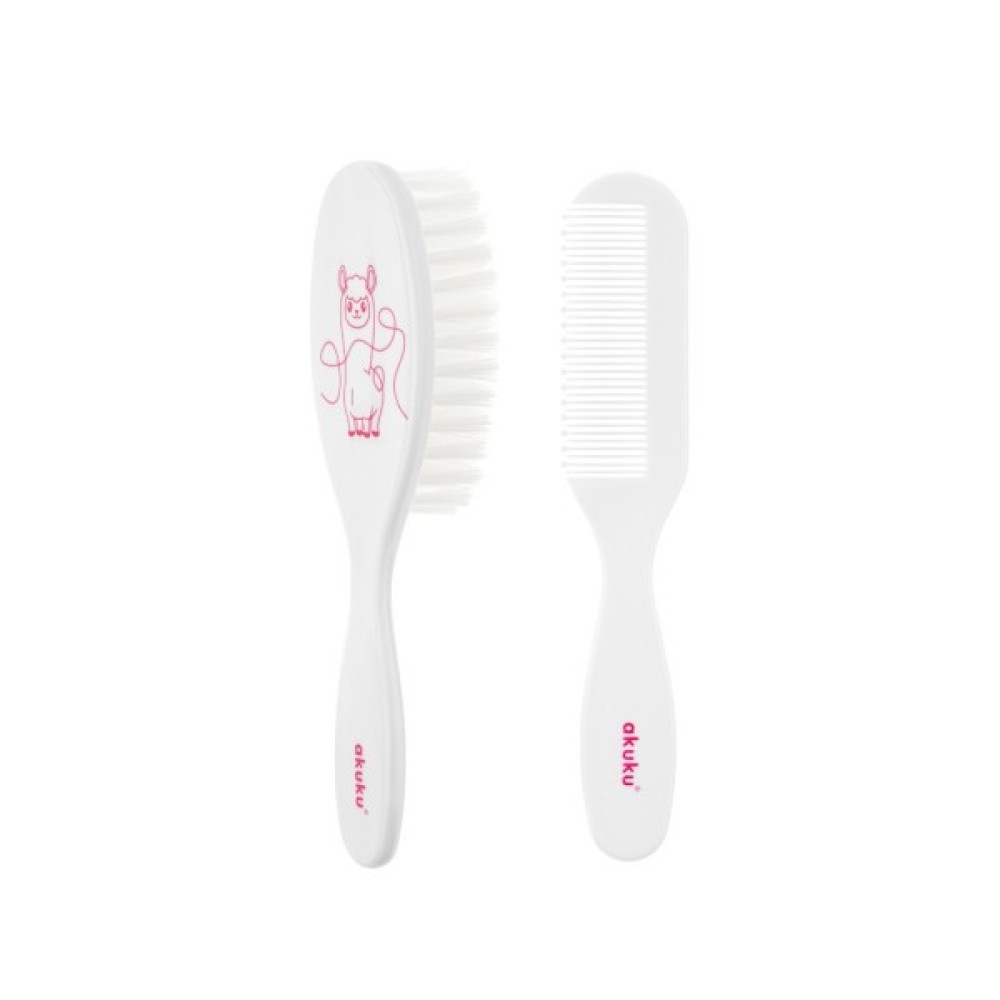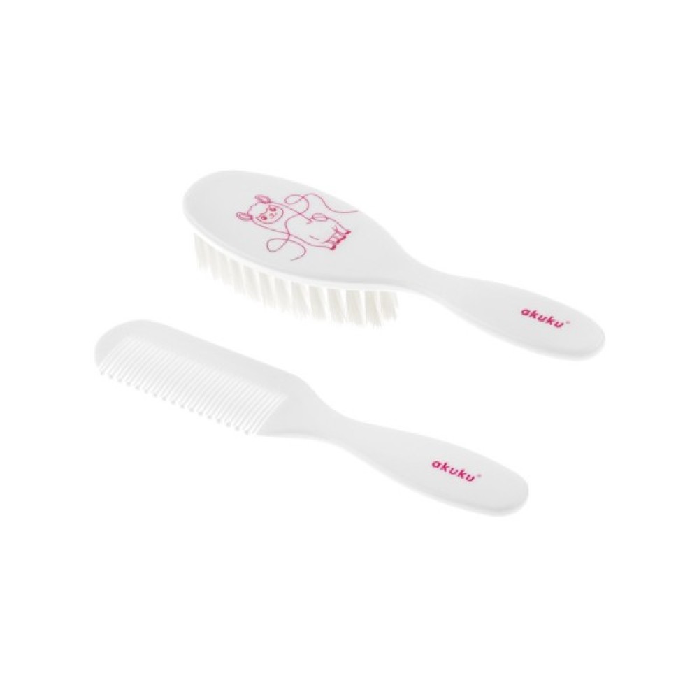 Безпечна, ніжна щітка, призначена для розчісування волосся дитини, виготовлена з нейлонової щетини. М'яко масажує головку дитини та не створює статичної електрики для волосся. Гребінець із закругленими зубчиками не дратує ніжну шкіру малюка.