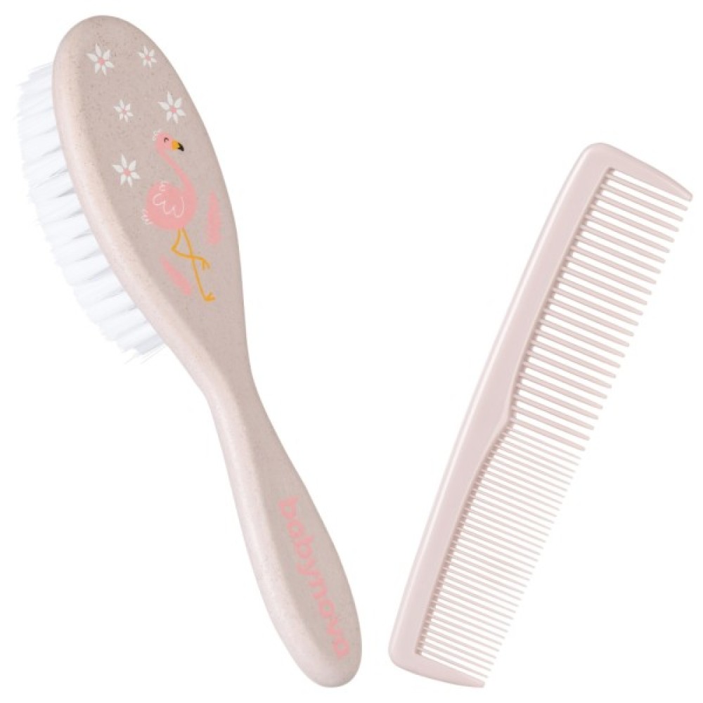 Набір з гребінця та щітки з м'якою штучною щетиною допоможе підтримувати гігієну шкіри голови та доглядати за волоссям дитини.
