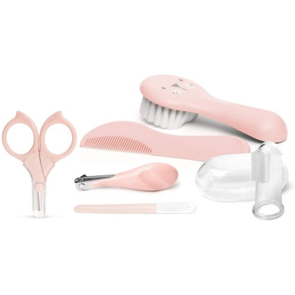 Комплектація: ножиці із закругленим кінчиком, кусачки та пилка для нігтів, гребінець і щітка для першого тонкого волосся, дитяча зубна щітка для масажу ясен та миття перших зубів
