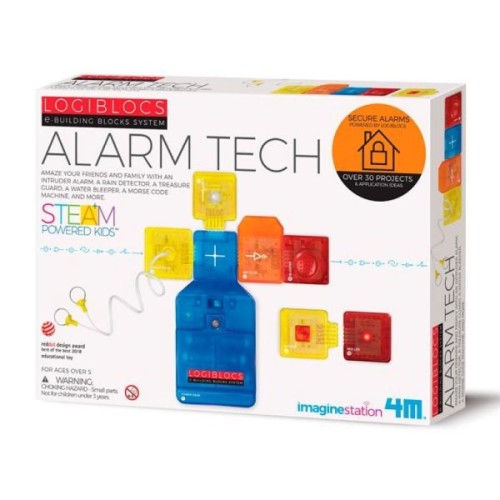 Набір для дослідження 4M Прилади оповіщення із серії Logiblocs заснований на датчиках світла і торкання, з якими можна грати в пошуки скарбів і створювати різні види сигналізації.