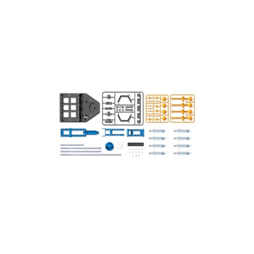 Комплектація: ручка x 4, кришка ручки, лівий кіготь, правий кіготь, роз'єм кігтя x 2, штифт x 3, стопор x 2, повзунок нижня частина, кришка шприца, верхня частина повзуна, шарнір шприца, тримач шприца, ковпачок голки x 6, ковпачок поршня x 7, ковпачок ручки x 4, підставка пластини, рама кігтя, рама, що обертається, рама верхнього важеля, основа, що обертається, циліндр шприца x 8, поршень шприца x 8, кіготь прокладки, довга труба, середня труба x 2, коротка труба, клейова лапка, маленький гвинт x 11, гвинт з плоскою вершиною x 2.