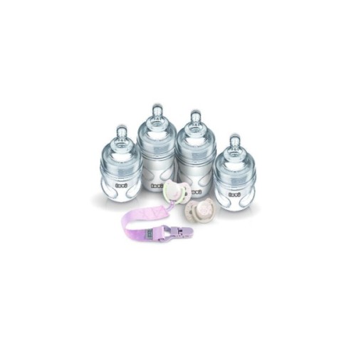 В комплекті пляшка 150 мл – 2 шт; пляшка 250 мл – 2 шт; пустушка силіконова симетрична 0-2 м – 2 шт; ланцюжок для пустушки – 1 шт