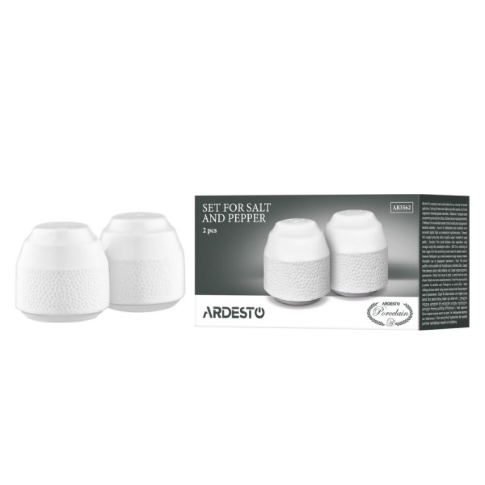 Набір для солі та перцю ARDESTO серії Ancona підкреслить вишуканий стиль сервірування. Білий колір додає елегантної простоти та створює особливу атмосферу. Вироби виготовлено з якісної порцеляни, міцної та стійкої до утворення сколів і тріщин, що забезпечує тривалий термін слугування. Посуд можна використовувати в мікрохвильовій печі та мити в посудомийній машині.