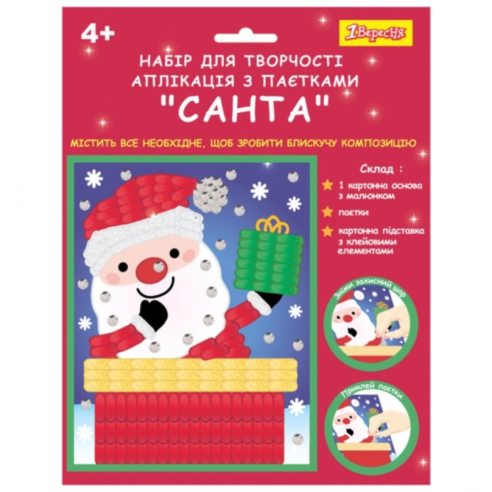 Набір для творчості 1 вересня Санта Аплікація фігурними паєтками (954535)