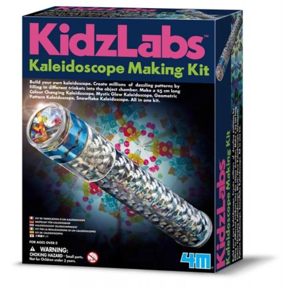 Змайструйте калейдоскоп з цим набором. Створіть мільйони чудових візерунків, заповнюючи його камеру декоративними елементами. Можна зробити калейдоскоп довжиною 25 см, що міняє кольори, калейдоскоп із містичним світінням, калейдоскоп із геометричними візерунками, калейдоскоп зі сніжинками. Все з одним комплектом.