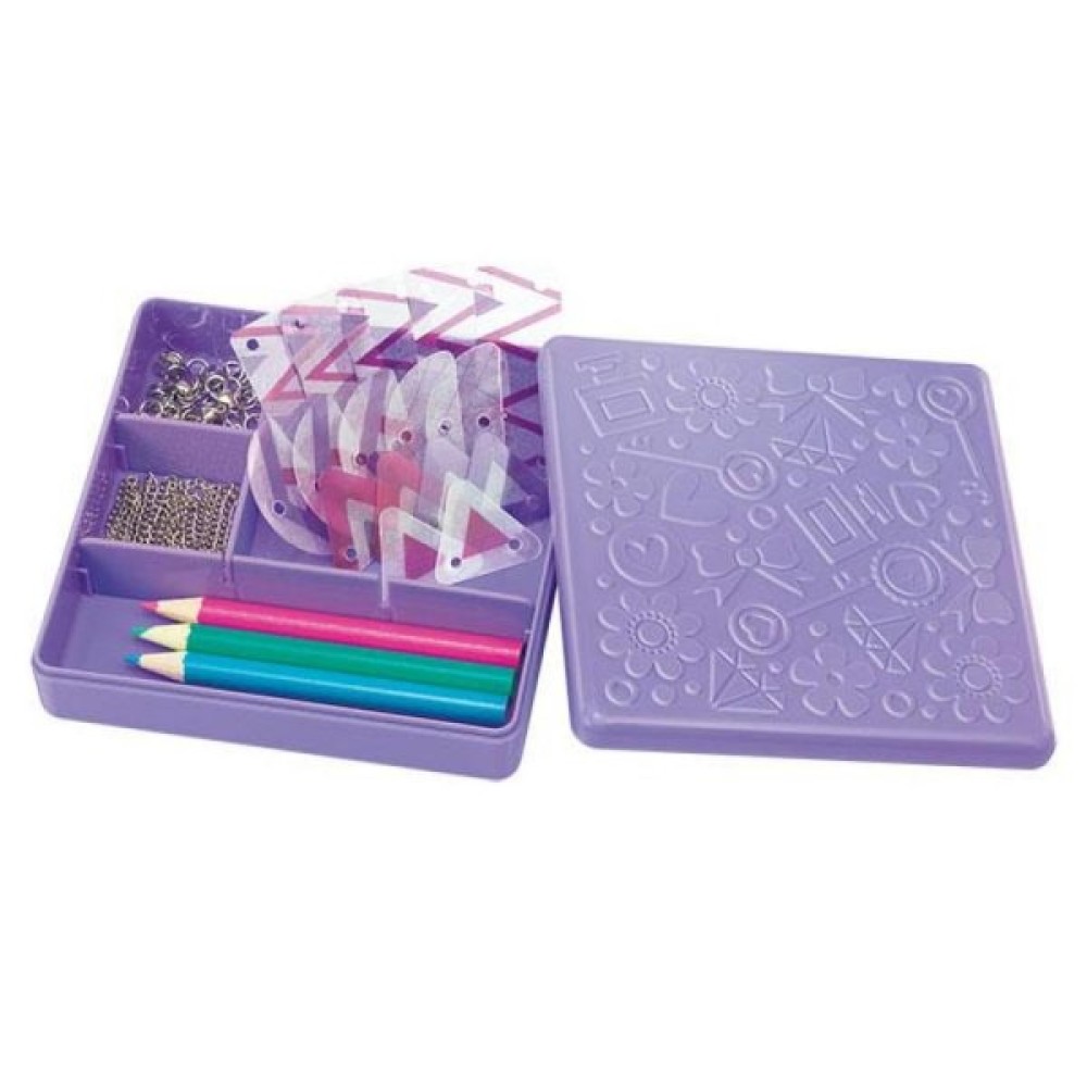 Набір для виготовлення намистин і прикрас. Містить пласкі заготовки, кольорові олівці, деталі ланцюжка і застібки. Спочатку необхідно розмалювати заготовки. Потім запекти, щоб вони зменшилися. А далі із саморобних намистин зробити аксесуар. Інструкція з малюнками додається.