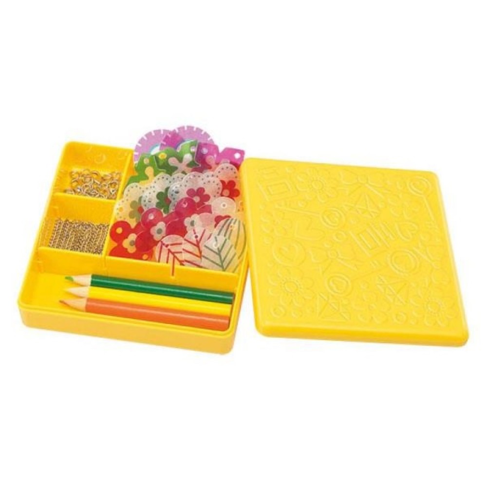 Набір для виготовлення намистин і прикрас. Містить пласкі заготовки, кольорові олівці, деталі ланцюжка і застібки. Спочатку необхідно розмалювати заготовки. Потім запекти, щоб вони зменшилися. А далі із саморобних намистин зробити аксесуар. Інструкція з малюнками додається.