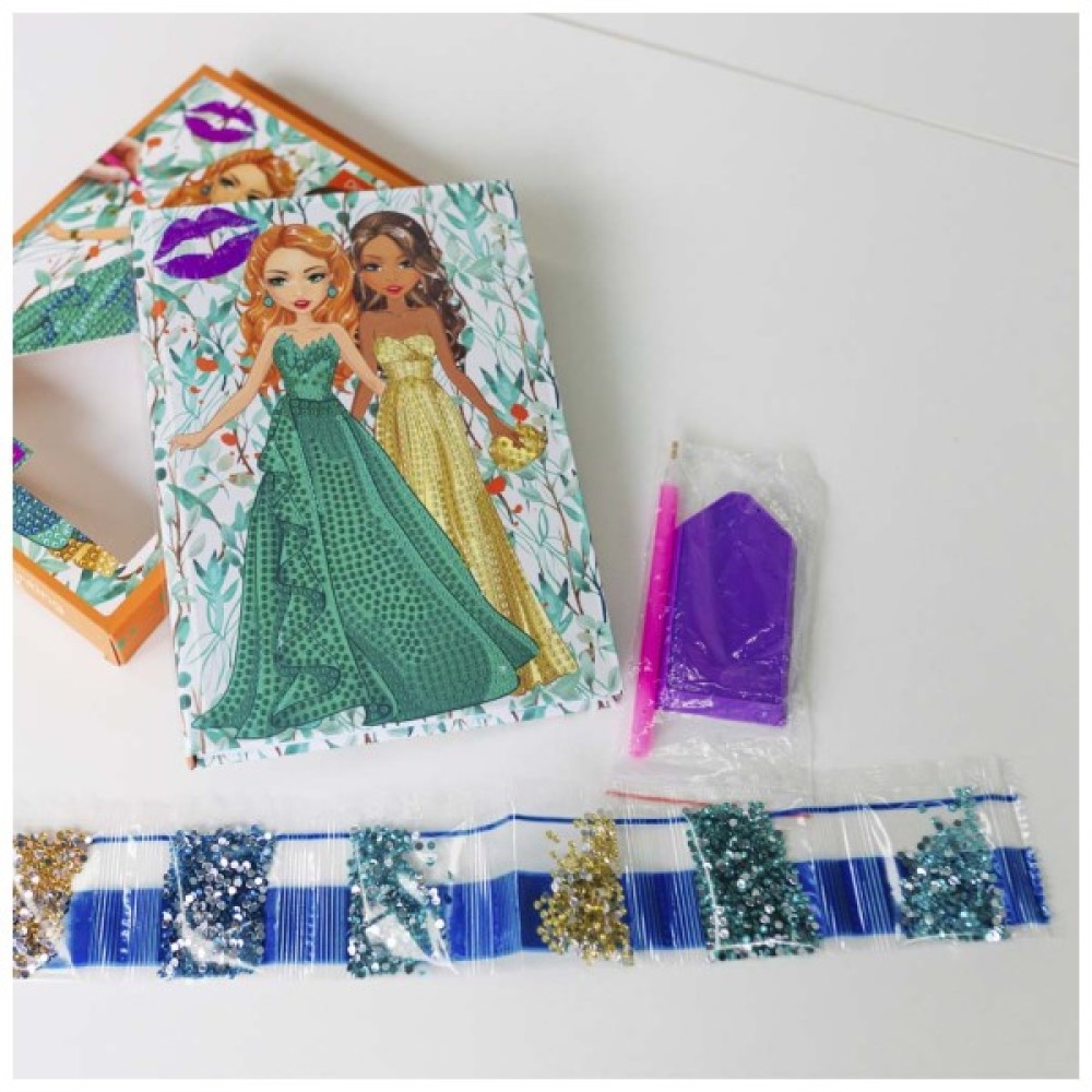 блокнот, стрази 6 кольорів, спеціальна ручка для декорування, піднос для страз