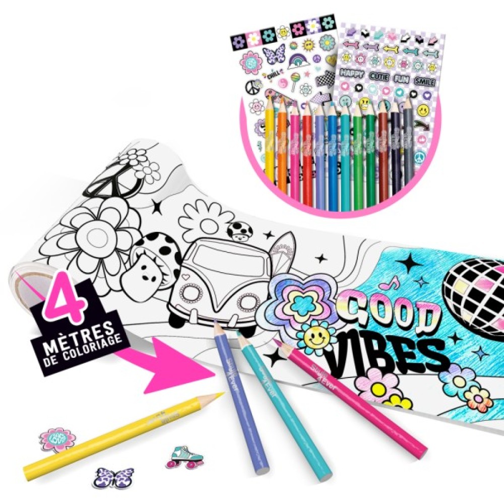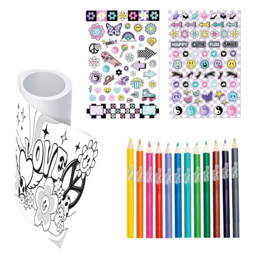 стрічка розмальовка (4 метри), 2 аркуші стікерів 50 штук, 12 кольорових олівців