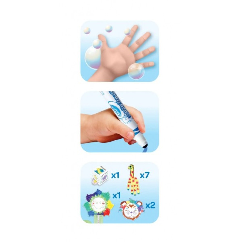 Компоненти усіх наборів Mini Kids можна змити та випрати. Тому мами і тата можуть розслабитися поки їхній маленький Ван Гог малює, навіть, якщо на ньому більше фарби, ніж на папірці! За допомогою Mini Kids діти можуть проявляти своє художнє самовираження та творчі здібності з самого раннього віку. Crayola надає засоби для заохочення та натхнення до мистецтва, яке, сподіваємось, діти пронесуть через усе своє життя.