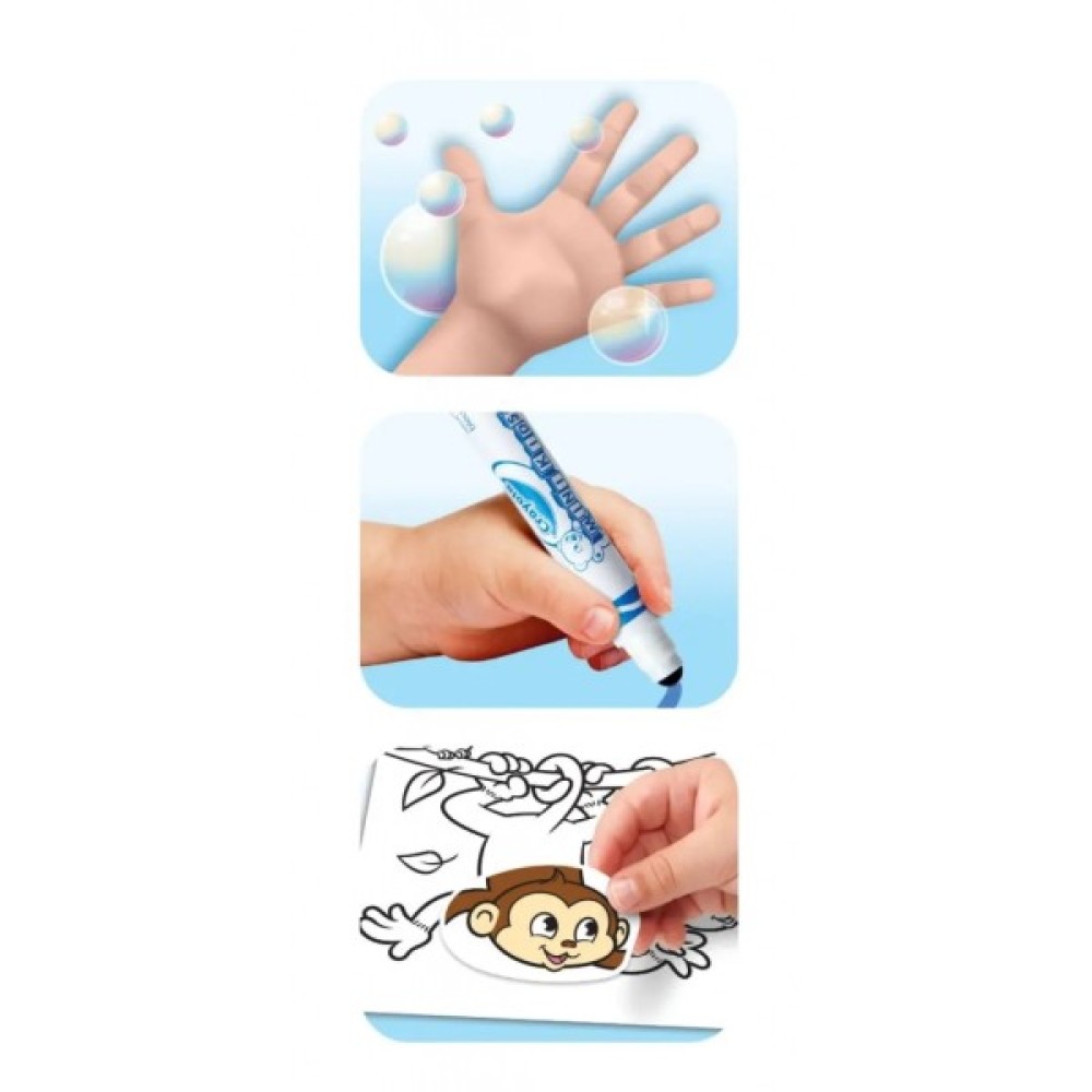 Дитина вчиться розпізнавати предмети, форми, кольори. Знаходити та співставляти їх, а потім можна і розфарбувати! До того ж чорнило легко змивається зі шкіри та одягу, тому не потрібно милити та скрабити.