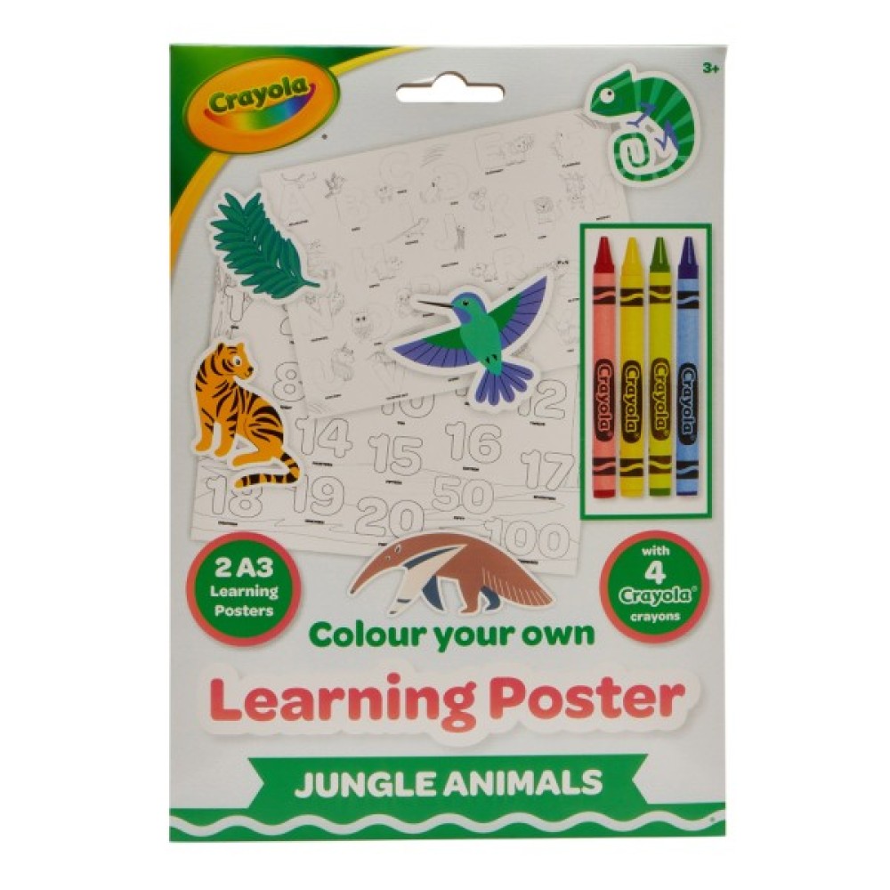 Розмальовка Crayola Навчальні плакати Джунглі пропонує дітям можливість вивчати різноманітність флори та фауни тропічних лісів, розфарбовуючи яскраві плакати.