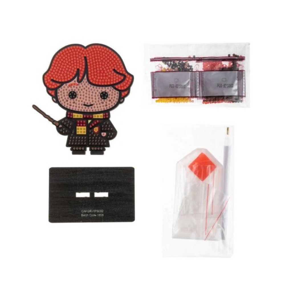 В набір входить: Дерев'яна фігурка персонажа з липкою основою. Кристали для декорування фігурки. Спеціальна ручка. Таця для кристалів. Віск. Пакетики для зберігання зайвих кристалів. Дерев'яна підставка для фігурки.