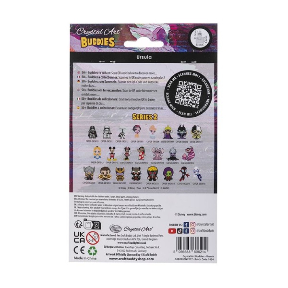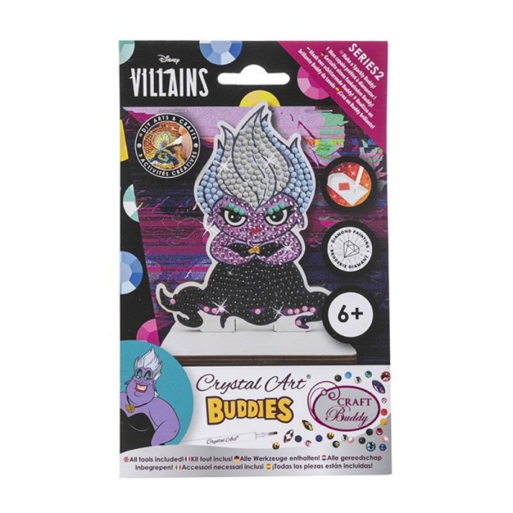 Набір Crystal Art Урсула відкриває перед дитиною двері у чарівний світ підводного царства. Набір для творчості Crystal Art Урсула – це занурення в атмосферу загадковості та енергії Урсули, надаючи вам можливість створювати твори мистецтва, повні сили та краси. Комплектація набору Crystal Art Урсула: дерев’яна фігурка персонажа з липкою основою, кристали для декорування фігурки, спеціальна ручка, таця для кристалів, віск, пакетики для зберігання зайвих кристалів, дерев’яна підставка для фігурки Якщо ваша дитина цінує світ Діснея, набір Crystal Art Урсула стане чудовим подарунком. Crystal Art Урсула – це можливість створити магію та втілити у життя творчі фантазії. Дозвольте цьому набору надихнути дитину на створення творів мистецтва, які не лише прикрашатимуть інтер’єр, а й наповнюватимуть його містикою та морською величчю.