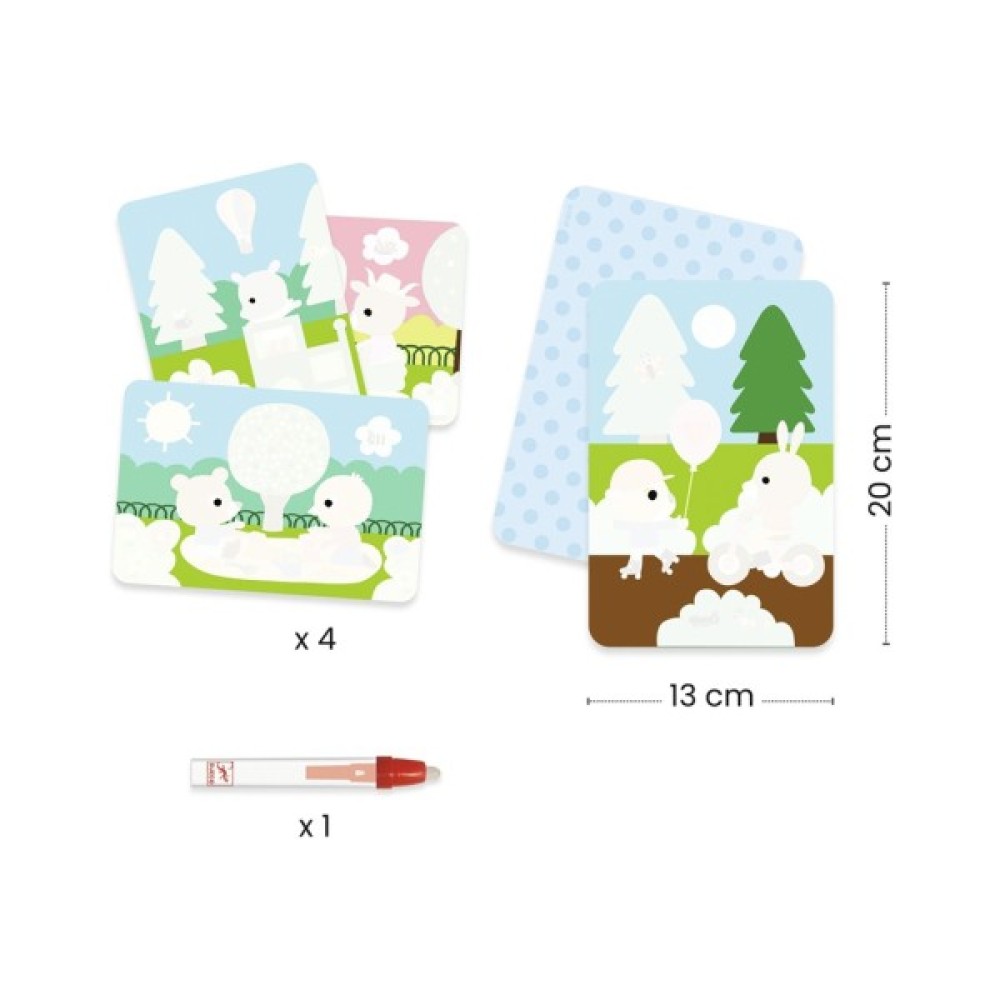 Крім того, художній комплект для малювання водою DJECO у парку відрізняється своїми чудовими дизайнами та якісними матеріалами. Картинки, включені в набір, мають унікальні ілюстрації із зображенням парку та його мешканців. Якісний картон забезпечує довговічність та збереження яскравості кольорів.