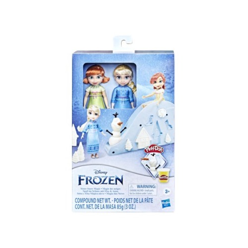 Створіть сніговий світ з молодими Ельзою та Анною: у комплекті - 1 банка блискучої маси для ліплення Play-Doh і снігова гірка із зимовими формами.