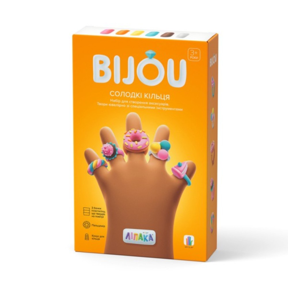 Набір пластиліну, що самостійно твердіє, ЛІПАКА – БІЖУТЕРІЯ: СОЛОДКІ КІЛЬЦЯ – розважить і малюків, і дорослих. За допомогою анімаційних інструкцій в додатку HEY CLAY, Ви зможете зліпити милі солодкі кільця. А завдяки компактним розмірам, набір зручно брати з собою. Пластилін твердіє на повітрі протягом 24 годин, після чого можна гратися створеними фігурками.