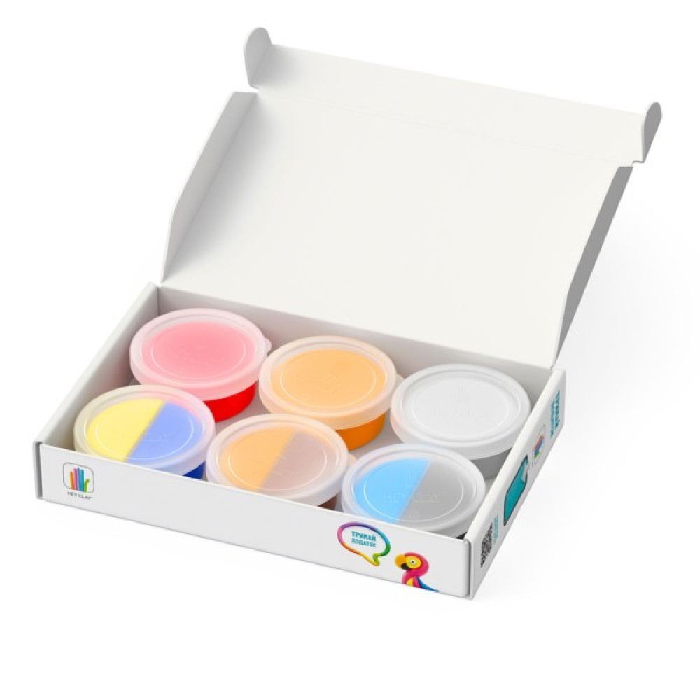 • До набору входить 6 баночок пластиліну різного кольору.