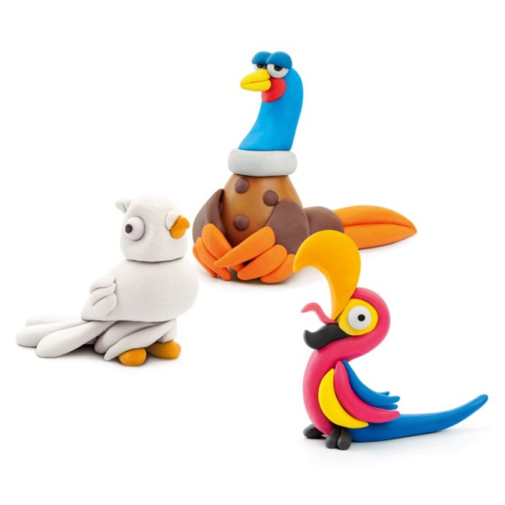 Набір пластиліну, що самостійно твердіє, ЛІПАКА – ПТАХИ: ПАПУГА АРА, ФАЗАН, ГОЛУБ – розважить і малюків, і дорослих. За допомогою анімаційних інструкцій в додатку HEY CLAY, Ви зможете зліпити трьох кумедних пташок. Пластилін твердіє на повітрі протягом 24 годин, після чого можна гратися створеними фігурками.