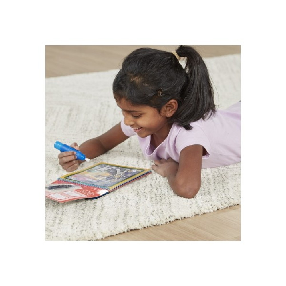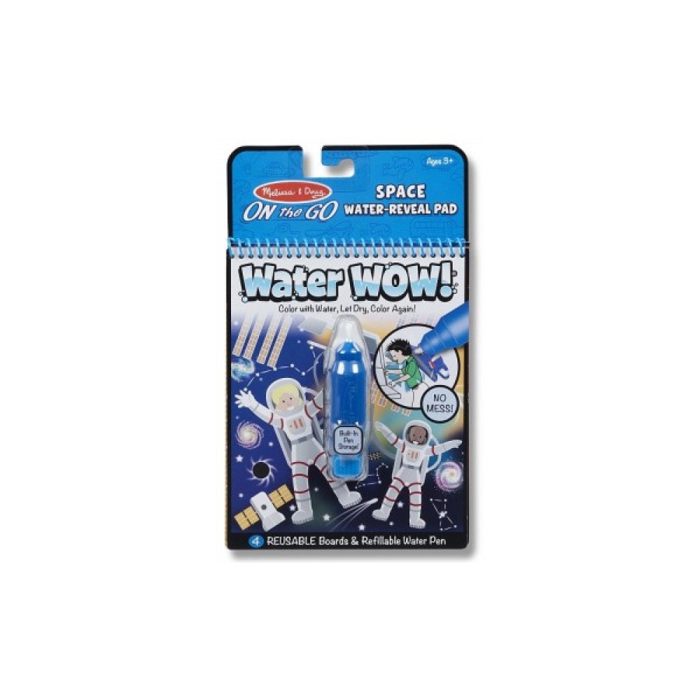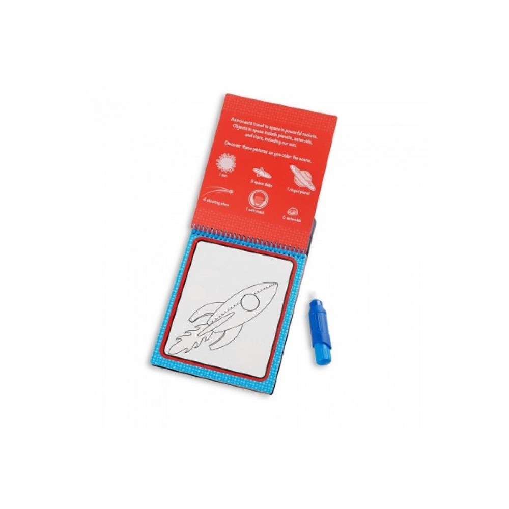 Ця тематична розмальовка про космос включає в себе чотири зображення, а також завдання з пошуку деталей картинки. Водний маркер зручно лягає в дитячу ручку, його можна акуратно зберігати на передній панелі книжечки, що робить Water Wow! прекрасним варіантом для подорожей з дітьми!