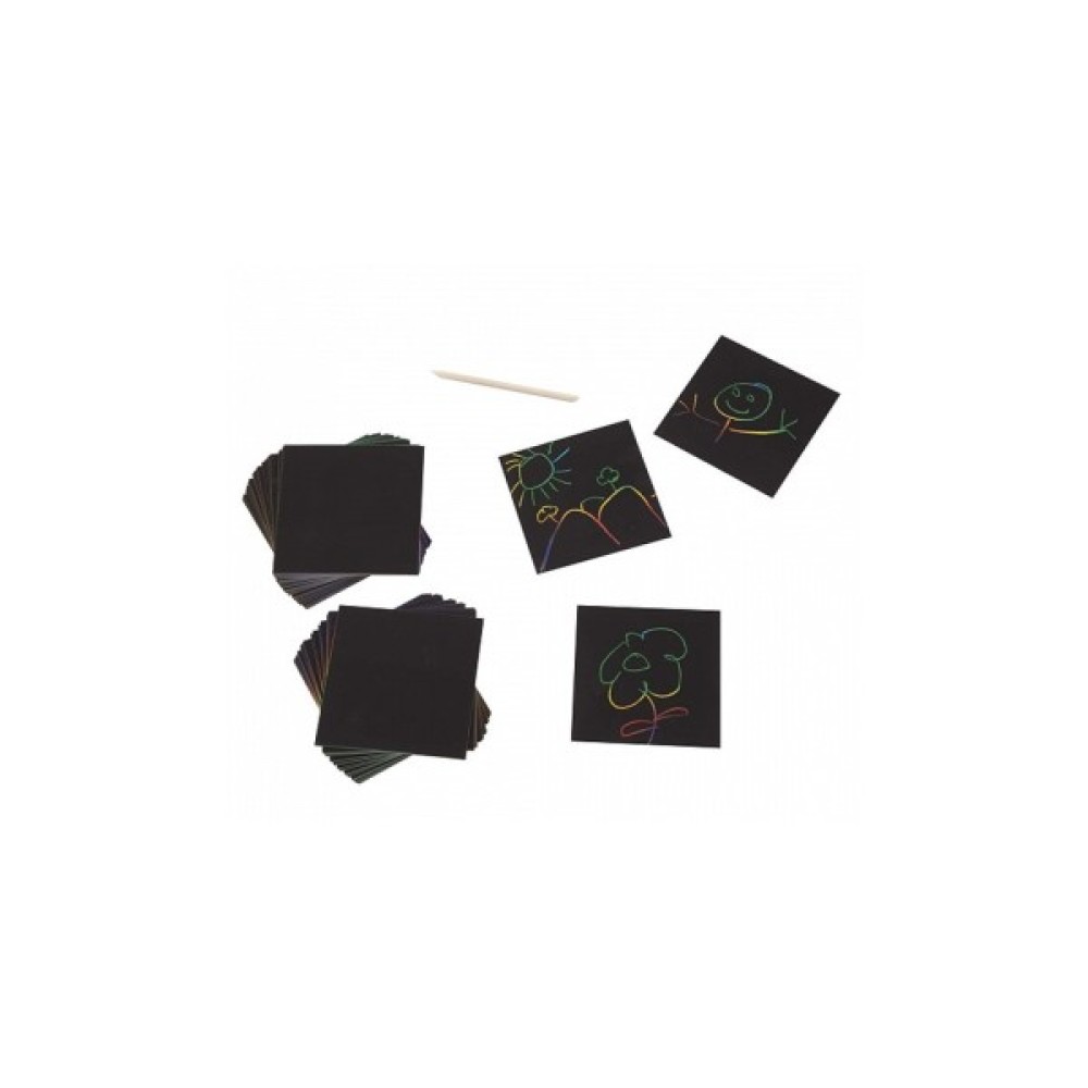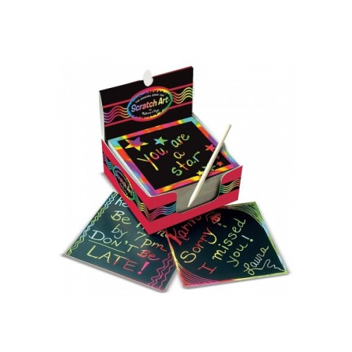 Творчі діти можуть робити нотатки, малювати і робити власні захоплюючі шедеври за допомогою нотаток Mini Scratch Art Notes. Набір включає в себе 125 міні-нотаток Rainbow, дерев'яний стилус і зручну коробку.