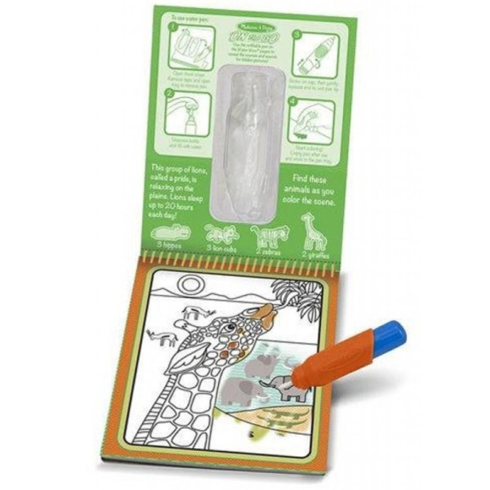 Ця захоплююча чарівна розмальовка унікальна, за допомогою маркера-пензлика, який потрібно наповнити водою, необхідно провести по зображенню на картинці можна відразу побачити, як проявляються тварини: слони, зебри, леви і багато інших. Через невеликий проміжок часу зображення висихають і зникають, і знову можна розфарбовувати.