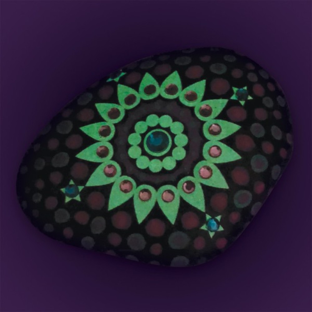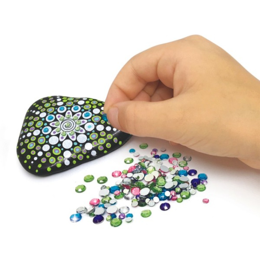 - Прикрасьте 6 камінців акриловими фарбами та стразами для яскравості саду.