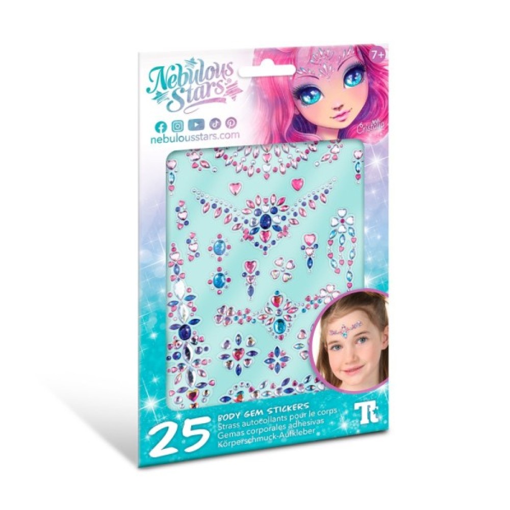Сяйте немов зіронька з набором кристалів для тіла NEBULOUS STARS – БОДІ-АРТ: ЗОРЯНІ ВІЗЕРУНКИ! Повторюйте образи улюблених зоряних дівчат або ж створюйте власний космічний образ, прикрасивши себе кольоровими наліпками-стразами!