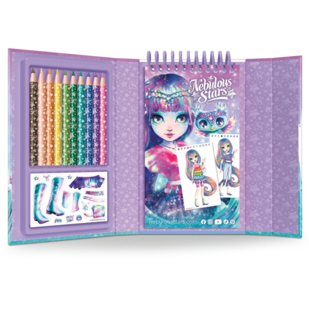 Зоряне натхнення може прийти в будь-який момент! Цей набір для творчості NEBULOUS STARS – СКЕТЧБУК ДИЗАЙНЕРА: АЙСЕДОРА, ВІЗЬМИ В ДОРОГУ дозволить вам розвивати своє почуття моди, де б ви не були. Створюйте власні вбрання для улюбленої зірки, роблячи нотатки або малюючи свої шедеври у дизайнерському скетчбуці!