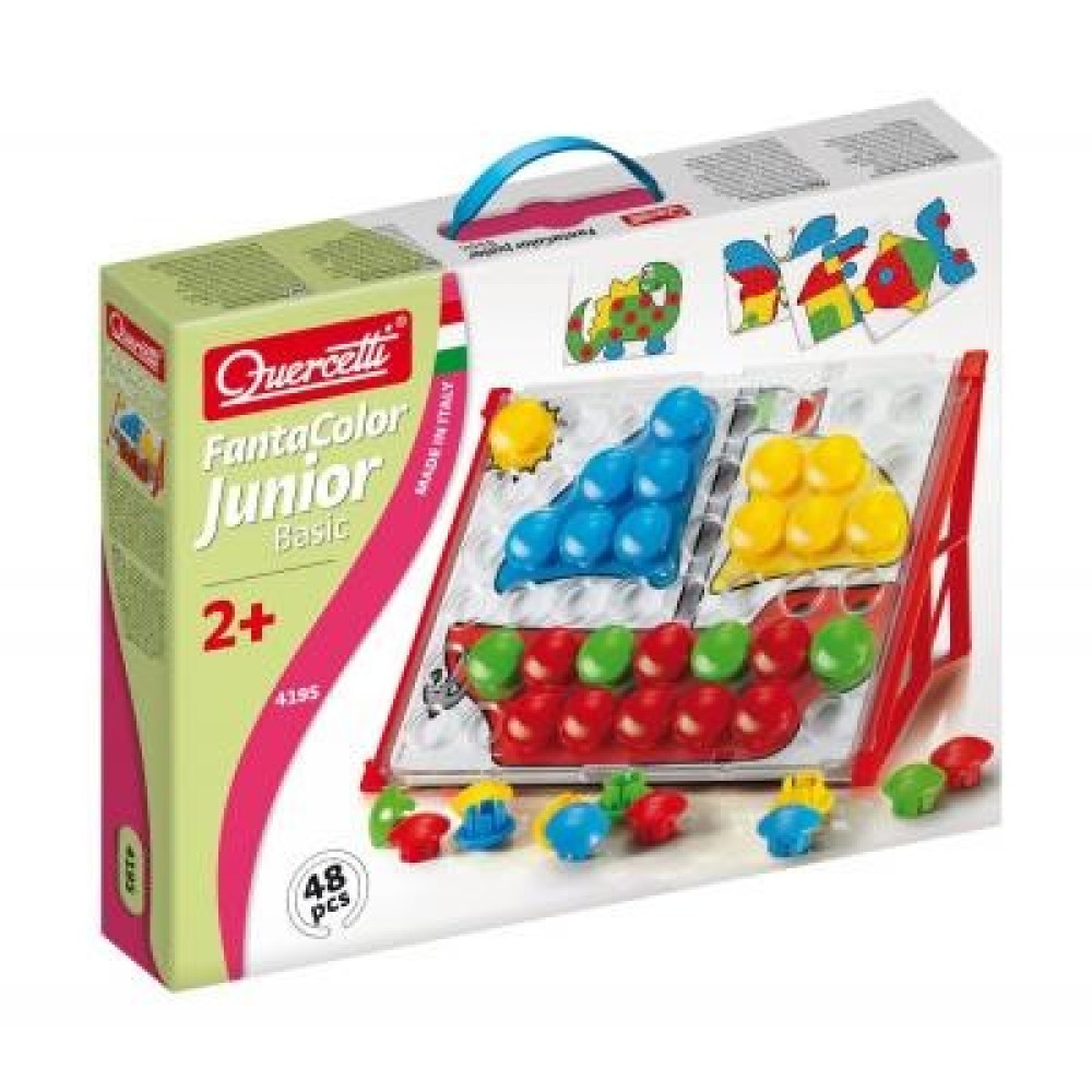 Барвистий набір для занять мозаїкою QUERCETTI 48 шт. (4195-Q) розів'є дрібну моторику пальців, кольоросприйняття та творчі здібності дитини. Оскільки фішки в цьому наборі великі, то немає ризику, що малюк їх випадково проковтне. Мозаїчні фішки різних розмірів дозволяють створювати оригінальні конструкції на зручній і компактній дошці-основі.
