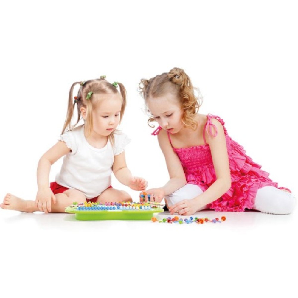 Іграшка включає фішки різного кольору і діаметра, які можуть вставлятися в готові картинки з природними ландшафтами.