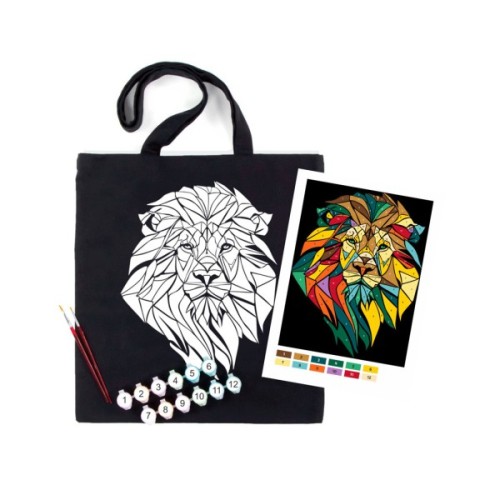 Модель екосумка-розмальовка, чорна, Неоновий лев 38х42см